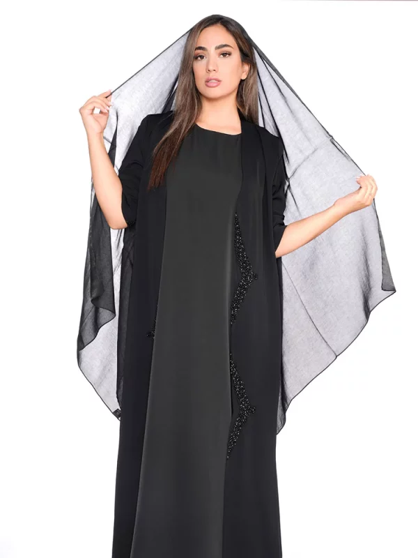 عباية الهال المصنوعة من قماش فيدا، هي مزيج من النعومة والمتانة.يتمتع هذا العباية بجمال وأناقة خاصّة مع التطريز بالجواهر السوداء على القماش. يمكن طلب جميع المقاسات لهذا الرداء، مما يجعلة مناسبًا للجميع. قماش فيدا لا يتقلص، ومع خصائصة الباردة والمتدفئة، فهو خيار مثالي للأيام الحارة والتجمعات المختلفة.