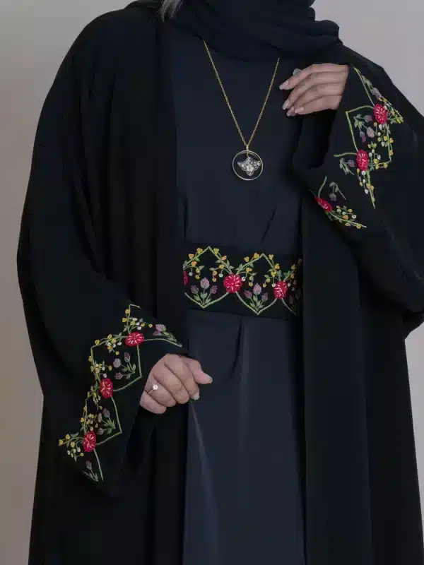 العباءة مزودة بتطريز رائع على الأكمام، مما يضيف لها لمسة من الجمال والأنوثة. التطريز لا يقتصر على جعلك تبدين جميلة فحسب، بل أيضًا يضفي على العباءة طابعًا مميزًا لا يتوفر في العباءات التقليدية. هذا التطريز الجميل يجعل العباءة قطعة فريدة من نوعها في خزانتك.