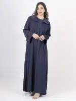 تتميز العباءة بقماش كريب خفيف مع دانتيل في الأجزاء العليا والأكمام، مما يعطيها مظهرًا أنيقًا وراحة تامة. التصميم البسيط والمينيمالي للعباءة يجعلها سهلة التنسيق مع أي ملابس أخرى، بينما يضيف اللون الموحد لها لمسة من الأناقة والبساطة. كما أن العباءة مفتوحة من الأمام، مما يجعلها مثالية للسيدات اللاتي يرغبن في سهولة الحركة والارتداء.