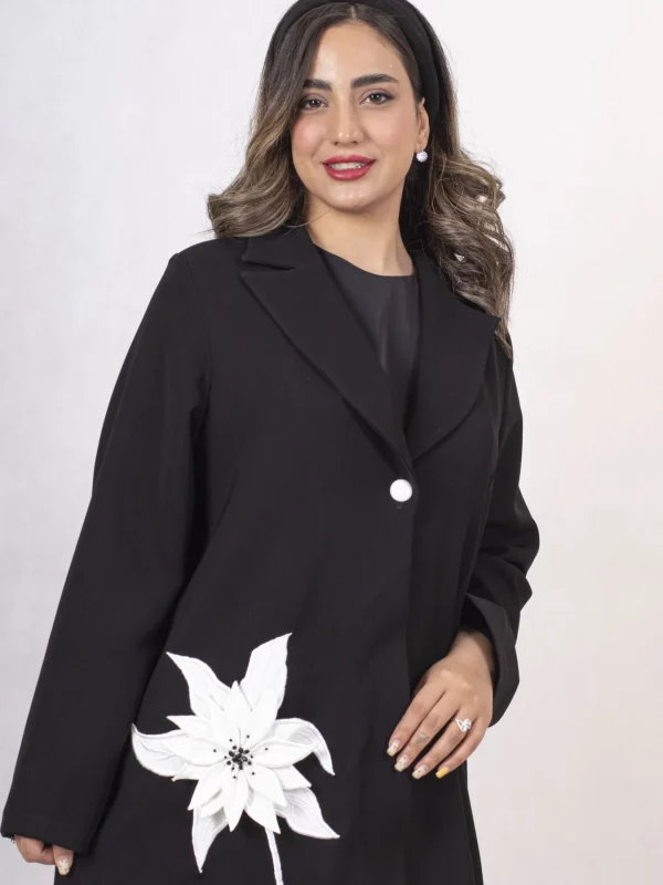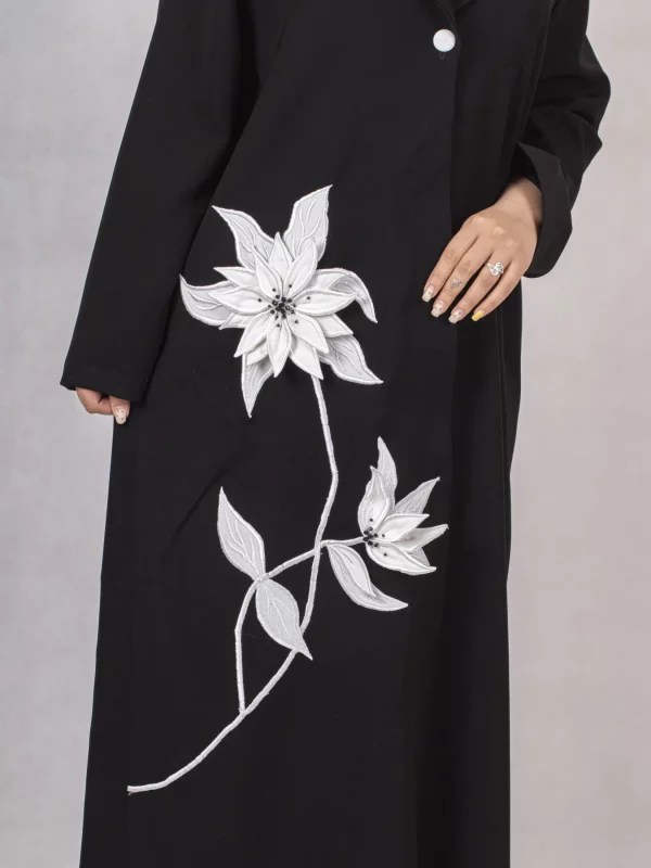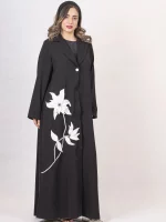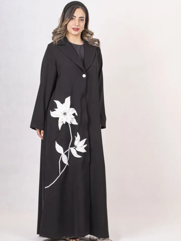 عبایة شمس مزودة بياقة جاكيت وتصميم مغلق من الأمام، تمنح شعوراً بالوقار والاحترام مع الراحة في الوقت ذاته. قصة الكلوتش تضمن حركة وانسيابية القماش بشكل طبيعي، وقد صممت لتوفر حرية الحركة الكاملة. هذه العباءة مناسبة بشكل خاص للمناسبات والاحتفالات، حيث يضاعف مظهرها الفاخر والرسمية من ثقتك بنفسك وجاذبيتك.