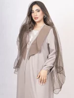 مع ياقة دائرية وتصميم مفتوح من الأمام، تعتبر عباءة جانا خياراً ممتازاً للاستخدام اليومي. طول العباءة الذي يتراوح بين 140 و150 سم يوفر تغطية كاملة لجسمك ويمنحك حرية الحركة. التصميم البسيط والدقيق للعباءة يجعلها تبدو رائعة من جميع الزوايا. كما يمكنك تنسيقها بسهولة مع الإكسسوارات للحصول على مظهر عصري وأنيق.