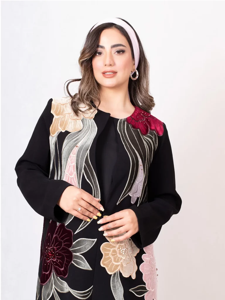 Diba Abaya The splendor of flowers in an authentic dress With its catchy name and exquisite embroidery, the Diba Abaya